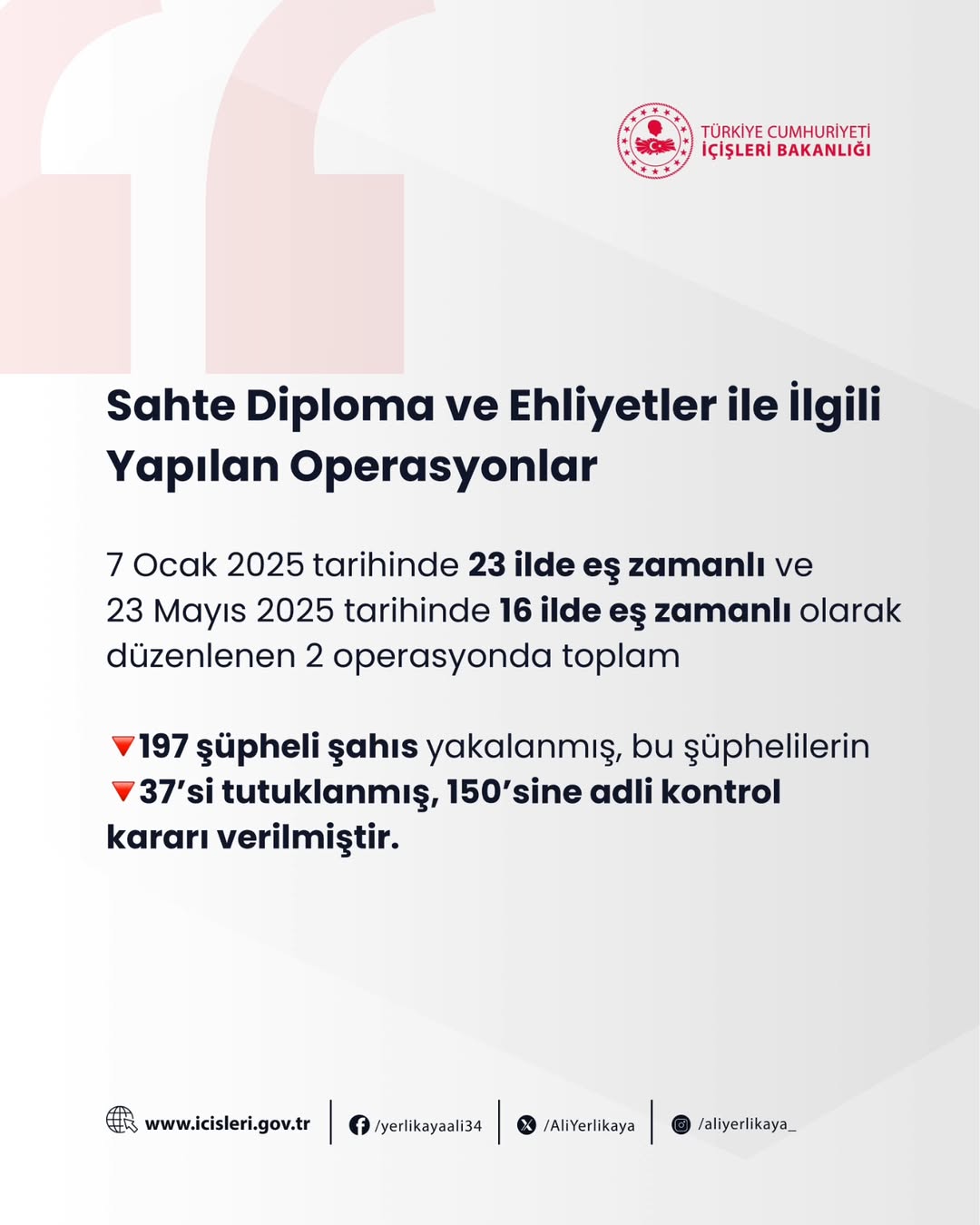 İçişleri Bakanlığı tarafından yapılan açıklamaya göre, 19 Mart 2025 tarihinden itibaren yasa dışı gösterilerde bugüne kadar toplam 1418 şüpheli gözaltına alındı. Açıklamada, halen 979 kişinin gözaltında olduğu ve bugün 478 şahsın adli makamlara sevk edileceği belirtildi.