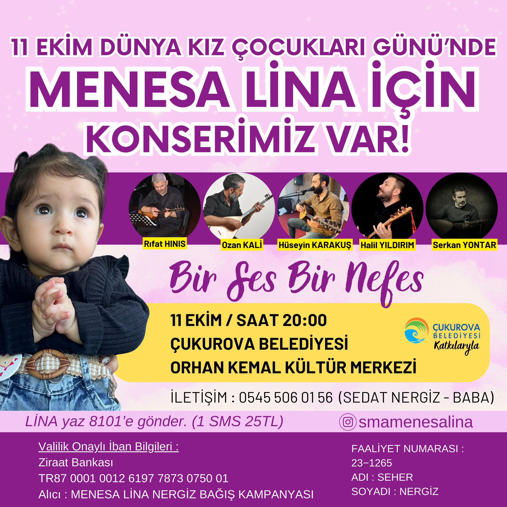 Menesa Lina, SMA hastası bir genç kızımızın yaşaması için umut olma fırsatı yakaladık. Çukurova Belediyesi, 11 Ekim Cuma günü saat 19.30'da bir yardım konseri düzenleyerek, Menesa Lina'nın hayata tutunması için destek çağrısında bulunuyor. Bu özel günün anlamı ve Menesa Lina'nın durumu göz önüne alındığında, herkesin katılım sağlayarak bu önemli etkinliğe destek olması bekleniyor. Konsere katılmanın yanı sıra, etkinliği sosyal medya üzerinden paylaşarak daha fazla insana ulaşılmasını sağlamak da büyük önem taşıyor. Menesa Lina'nın tedavisi için gerekli kaynakların toplanmasında herkesin katkısı büyük bir öneme sahip. Bu yardım konserine katılarak veya sosyal medyada paylaşarak Menesa Lina'ya umut olma fırsatını kaçırmayın. #DünyaKızÇocuklarıGünü #MenesaLina #SMA #YardımKonseri