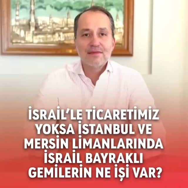 Yeniden Refah Partisi Genel Başkanı Dr. Fatih Erbakan, İstanbul ve Mersin limanlarında İsrail bayraklı gemilerin bulunmasını eleştirdi. Erbakan, "İsrail’le ticaretimiz yoksa bu gemilerin burada ne işi var?" şeklinde açıklama yaptı.