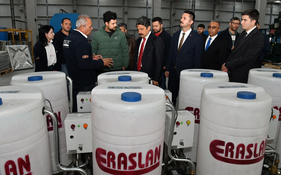 Valimiz Sayın Murat Sefa Demiryürek, Kırşehir Organize Sanayi Bölgesinde faaliyet gösteren işletmelerde incelemelerde bulunarak iş adamları ile görüştü. İncelemelerde Valimiz, fabrikalarda yürütülen çalışmalar hakkında bilgiler alırken aynı zamanda işletme sahipleriyle de bir araya geldi. İlk olarak Eraslan Güneş Enerji Sistemlerini ziyaret eden Valimiz, işletme sahibi Süleyman Eraslan'dan fabrikada yürütülen çalışmalar hakkında bilgiler aldı. Burada yapılan çalışmaların ilin ekonomisine ve istihdama büyük katkı sağladığını vurgulayan Valimiz, işletme sahibini işlerindeki başarısından dolayı tebrik etti. Ardından, Uygurlar Paketleme Makinaları fabrikasına uğrayan Valimiz, işletme sahibi Adnan Naci Uygur'dan üretimleri hakkında bilgiler alarak üretim aşamalarını yerinde gördü. Valimiz, bu işletmenin de ilin ekonomisine önemli bir katkı sağladığını belirterek işletme sahibini takdir etti. Kırşehir Organize Sanayi Bölgesi'nin ilimizin kalkınmasında son derece önemli bir yere sahip olduğunu belirten Valimiz, burada faaliyet gösteren işletmelerin azimli çalışmalarından dolayı kutladığını söyledi. Ayrıca Valimiz, bölgede yapılacak yeni yatırımların da ilerleyen dönemlerde ekonomik büyümeye katkı sağlayacağını vurguladı. Valimiz, Sanayi ve Teknoloji İl Müdürü Süleyman Aslan ile OSB Müdürü İsmail Eskioğlu'nun da eşlik ettiği ziyaretlerde, işletmelerdeki üretim alanlarını gezerek fabrikaların işleyiş aşamaları hakkında yetkililerden bilgiler aldı. Valimiz, bu incelemelerin ilin ekonomik gelişimi ve istihdama katkı sağlamak adına önemli olduğunu sözlerine ekledi. Bu tür incelemelerin ilin sanayi sektörünün gelişimine olanak sağladığını ve iş adamlarının cesaretini artırdığını ifade eden Valimiz, Kırşehir Organize Sanayi Bölgesi'nin daha da büyüyerek önemli bir cazibe merkezi olacağına inandığını belirtti. Bu sayede ilin ekonomisinin güçlenerek istihdamın artmasının sağlanacağını dile getirdi.