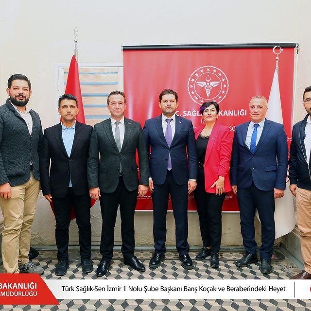 Türk Sağlık-Sen İzmir 1 Nolu Şube Başkanı Barış Koçak, beraberindeki heyetle birlikte İzmir İl Sağlık Müdürü Dr. Öğr. Üyesi M. Burak Öztop'u ziyaret etti. Ziyaret sırasında sağlık alanındaki güncel konular ve iş birliği fırsatları ele alındı. Koçak ve heyeti, İzmir'deki sağlık hizmetlerinin geliştirilmesi ve çalışanların sorunlarının çözülmesi noktasında karşılıklı görüş alışverişinde bulundu.