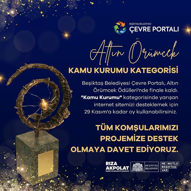 Belediye, çevre dostu projelerin desteklenmesi amacıyla komşularını bu başarıyı kutlamaya davet ediyor. Beşiktaşlılar, 29 Kasım'a kadar çevre portalına destek vermek için oy kullanabilecekler.