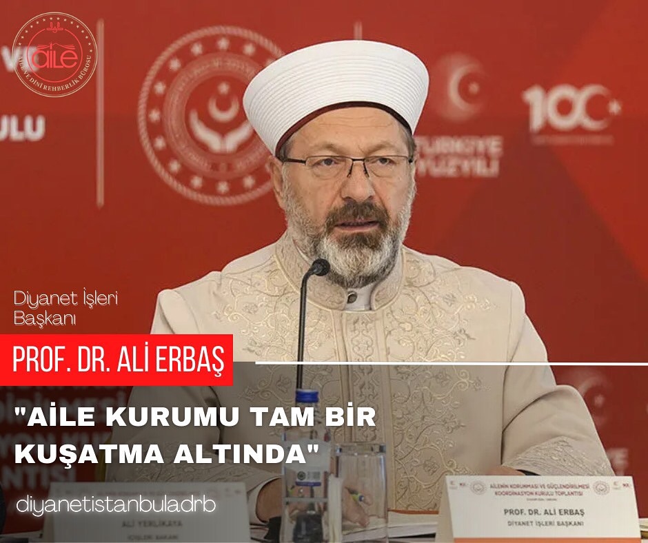 Erbaş, günümüzde aile kurumunun küresel boyutta ciddi tehditler altında olduğunu belirtti. Boşanma oranlarının artışı, tek ebeveynli ailelerin çoğalması, nikahsız birlikteliklerin ve eşcinsel evliliklerin meşrulaştırılması gibi durumlar, ailenin karşılaştığı zorluklar olarak sıralandı. Bu bağlamda, aile ve fıtrat konularında daha fazla hassasiyet gösterilmesi gerektiği vurgulandı. Başkan Erbaş, aileyi tehdit eden düşüncelere karşı sağlam bir duruş geliştirilmesi gerektiğini dile getirdi.