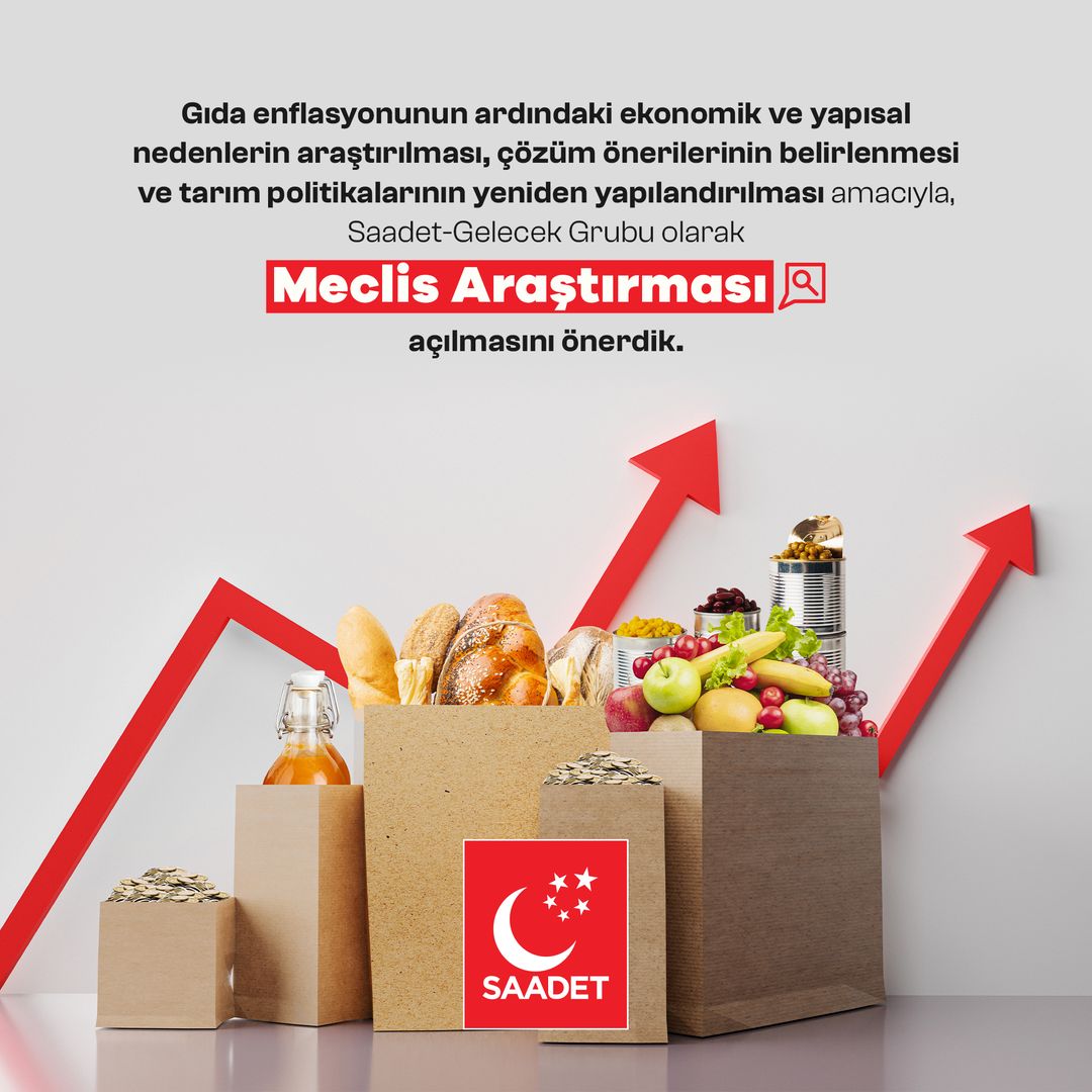 Saadet-Gelecek Grubu, gıda enflasyonuna dikkat çekti. Gıda enflasyonunun sebeplerini incelemek ve bu konuda çözümler geliştirmek için Meclis Araştırması açılmasını önerdi. Özellikle ekonomik ve yapısal nedenlerin araştırılması amacıyla hazırlanan öneri, tarım politikalarının yeniden yapılandırılmasına odaklanmayı hedefliyor.