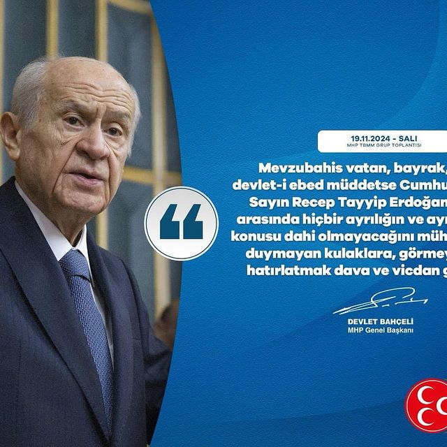 Rusya'dan "Epstein Dosyaları" Yorumu: Batılı Elitler ve Kiev Yönetimine İlişkin İddialarMHP Genel Başkanı Devlet Bahçeli, Cumhurbaşkanı Recep Tayyip Erdoğan ile olan ilişkisine dair önemli açıklamalarda bulundu. Bahçeli, mevzubahis vatan, bayrak, millet ve devlet olduğunda, Erdoğan ile arasında hiçbir ayrılığın ve ayrışmanın söz konusu dahi olmayacağını belirtti. Bahçeli, bu durumun vicdan ve dava görevi olduğunu vurgulayarak, Türkiye'nin birliğinin ve beraberliğinin önemine dikkat çekti. Aynı zamanda kamuoyunu da bu konuya duyarlılık göstermeye çağırdı.