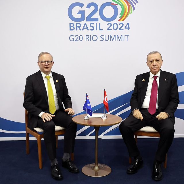 Cumhurbaşkanı Recep Tayyip Erdoğan, Avustralya Başbakanı Anthony Albanese'yi kabul etti. Görüşme, iki ülkeler arasındaki ilişkilerin güçlendirilmesi amacıyla gerçekleştirildi. Başkanlık ofisinde yapılan kabulde, Türkiye ve Avustralya'nın farklı alanlarda işbirliğini artırma konusundaki istekleri dile getirildi. İki lider, ekonomik, ticari ve kültürel alanlarda işbirliği fırsatlarını değerlendirdi. Görüşmenin ardından, iki ülkenin ilişkilerini daha da ileriye taşımak için atılacak adımlara yönelik ortak bir anlayış oluştu. Bu kabul sırasında, uluslararası konularda da karşılıklı destek vurgulandı ve iki ülkenin ortak hedefleri üzerinde duruldu.