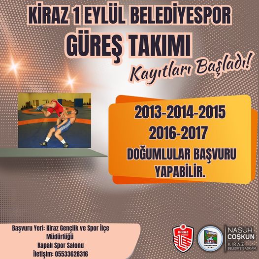 Kiraz Belediyesi, ilçedeki gençlerin spora yönlendirilmesi ve güreşin yaygınlaştırılması amacıyla önemli bir adım atıyor. Kiraz 1 Eylül Spor Kulübü bünyesinde, güreş kursları düzenlenecek.