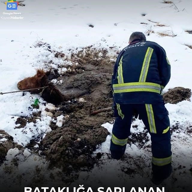Kayseri OSB İtfaiye ekipleri, gelen bir ihbar üzerine hareket etti. İhbarda, bir yılkı atının bataklığa saplandığı bildirildi. Ekipler, ihbarın ardından hızla olay yerine ulaştı.