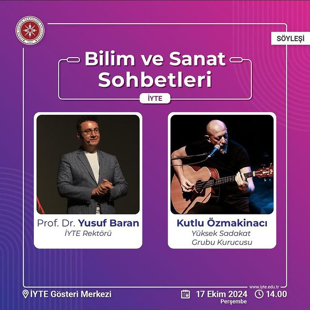 İzmir Yüksek Teknoloji Enstitüsü, Prof. Dr. Yusuf Baran ile Yüksek Sadakat Grubu Kurucusu Kutlu Özmakinacı'nın katılımıyla özel bir söyleşi düzenliyor. Söyleşi, tüm İzmir Yüksek Teknoloji Enstitüsü öğrencilerine ve personeline açıktır. Etkinlik, 17 Ekim Perşembe günü saat 14.00'te İYTE Gösteri Merkezi'nde gerçekleştirilecek. Radyo Topluluğu, bu etkinlikte katkı sağlayacak. Bu etkinlik, katılımcılara sanat ve bilim alanında bir araya gelerek, güncel konular üzerine bilgi alışverişinde bulunma fırsatı sunacak. İYTE'liler, bu etkileyici konuşma ve deneyim paylaşımından faydalanarak ilham alacak ve farklı bakış açıları geliştirme imkanı bulacaklar.