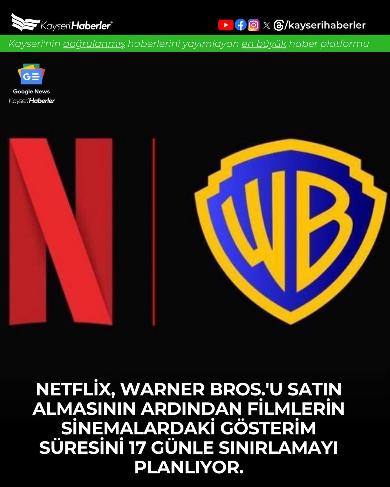 Dijital yayıncılık devi Netflix, Warner Bros'u satın alma sürecinin ardından sinema salonlarında gösterilen filmlerin vizyon süresinde önemli bir değişiklik planlıyor. Planlanan yeni düzenlemeye göre, Warner Bros'a ait filmlerin sinemalardaki gösterim süresi 17 günle sınırlandırılacak. Bu hamle, sinema endüstrisi ile dijital platformlar arasındaki dengeleri yeniden şekillendirebilir.