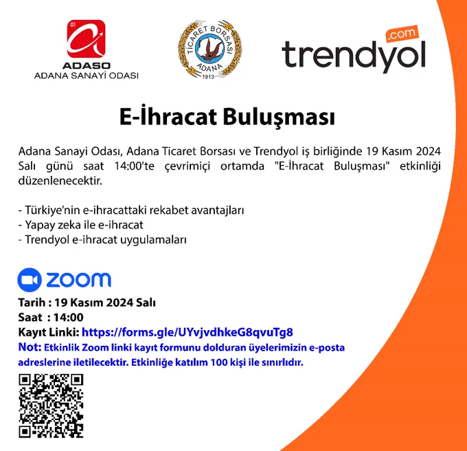 Adana'da Çevrimiçi E-İhracat Buluşması Yapılacak