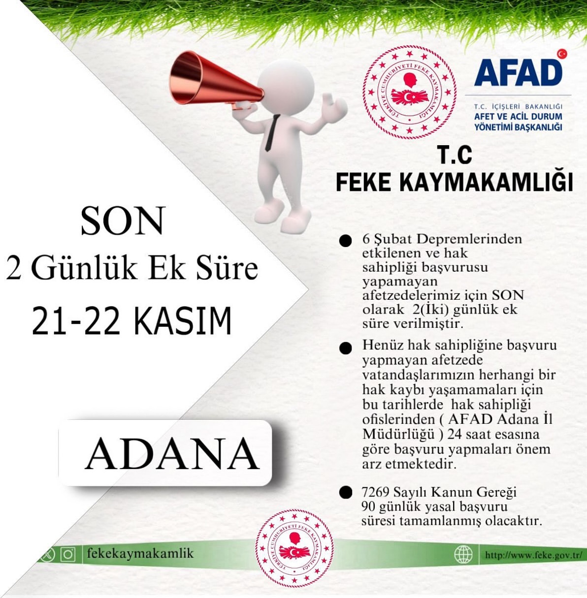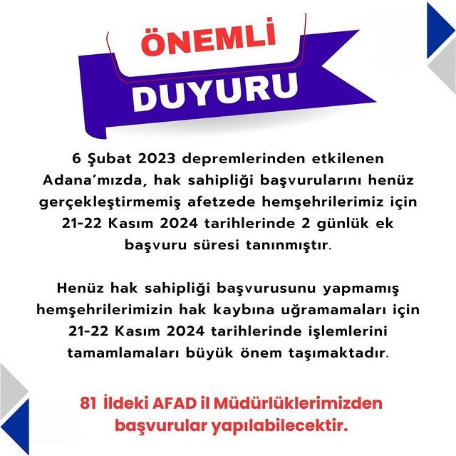 Adana'da 6 Şubat 2023 Depremleri İçin Ek Başvuru Süresi Tanındı
