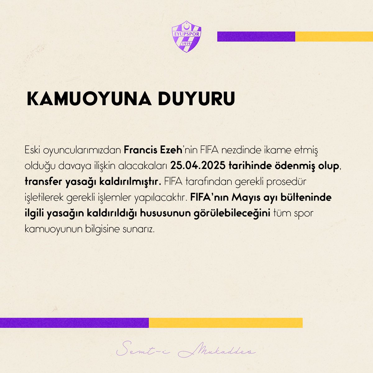 Eyüpspor'un Transfer Yasağı Kaldırıldı